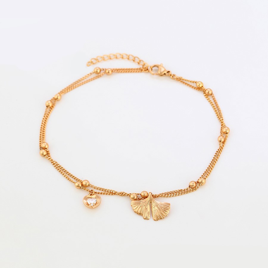 Bellísima tobillera doble elaborada en Acero, con doble enchape de oro rosé de 18K, con cadena de extensión.