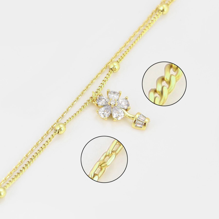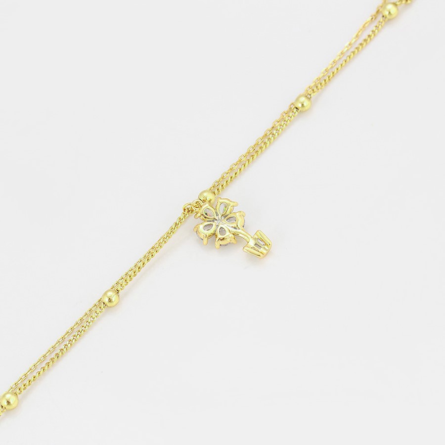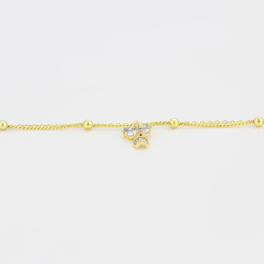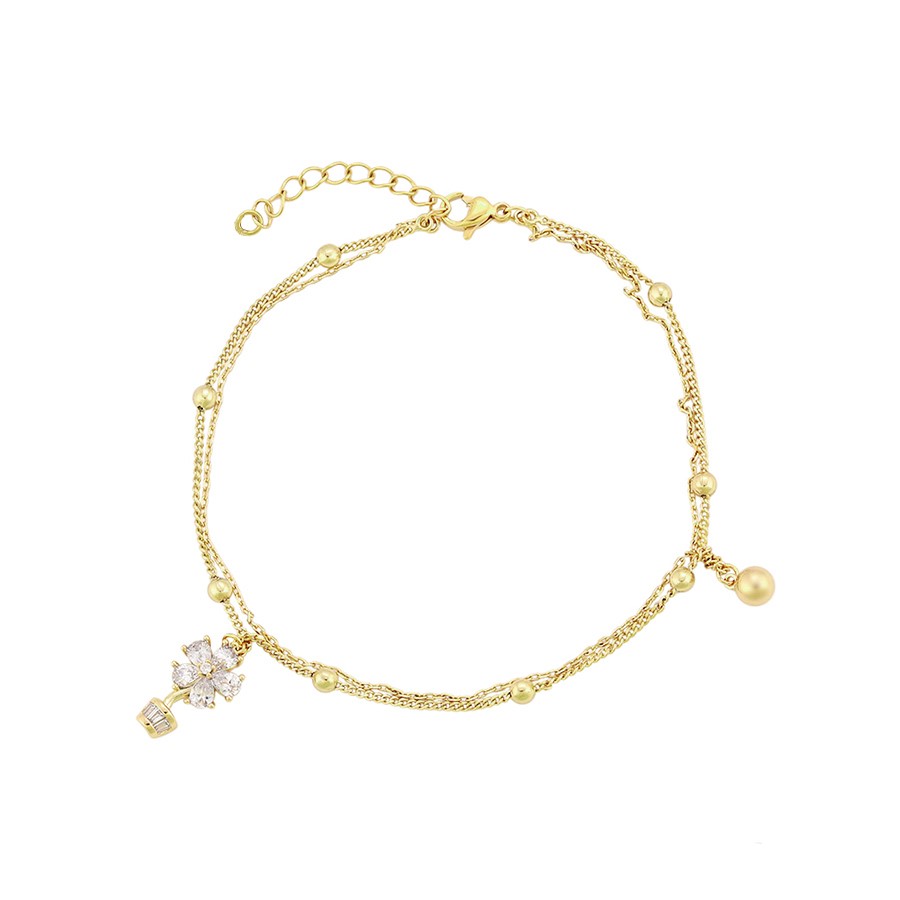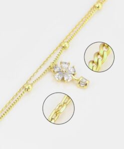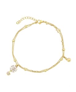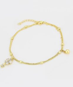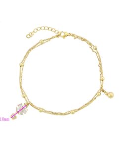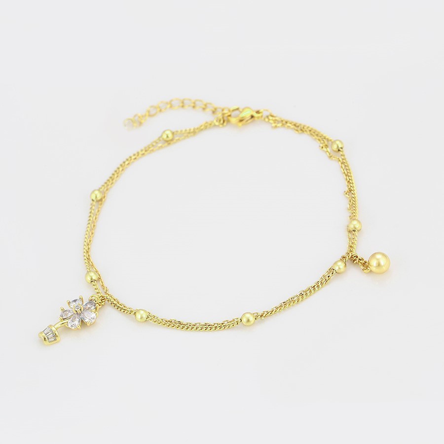Hermosa tobillera elaborada en acero, con doble enchape de oro dorado de 18k, e incrustación de cristal.