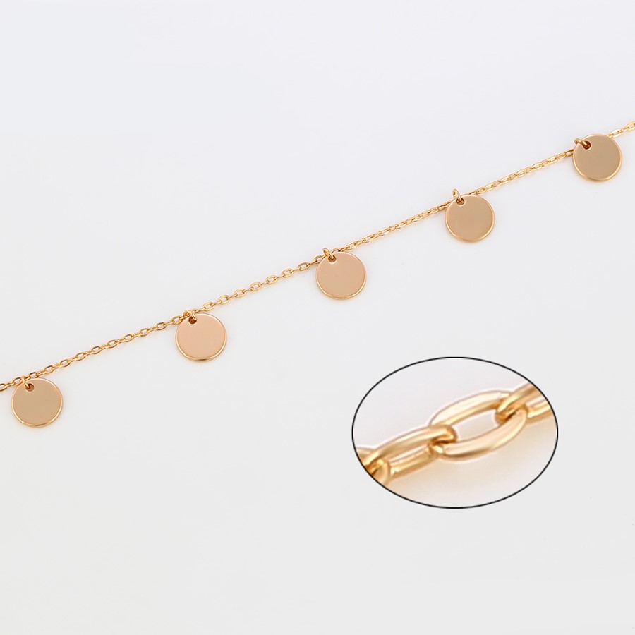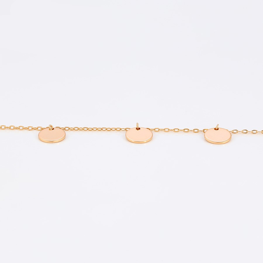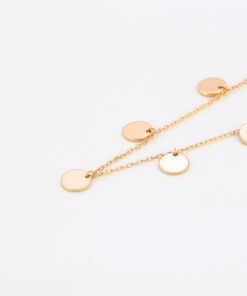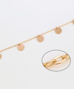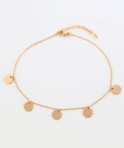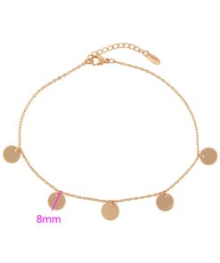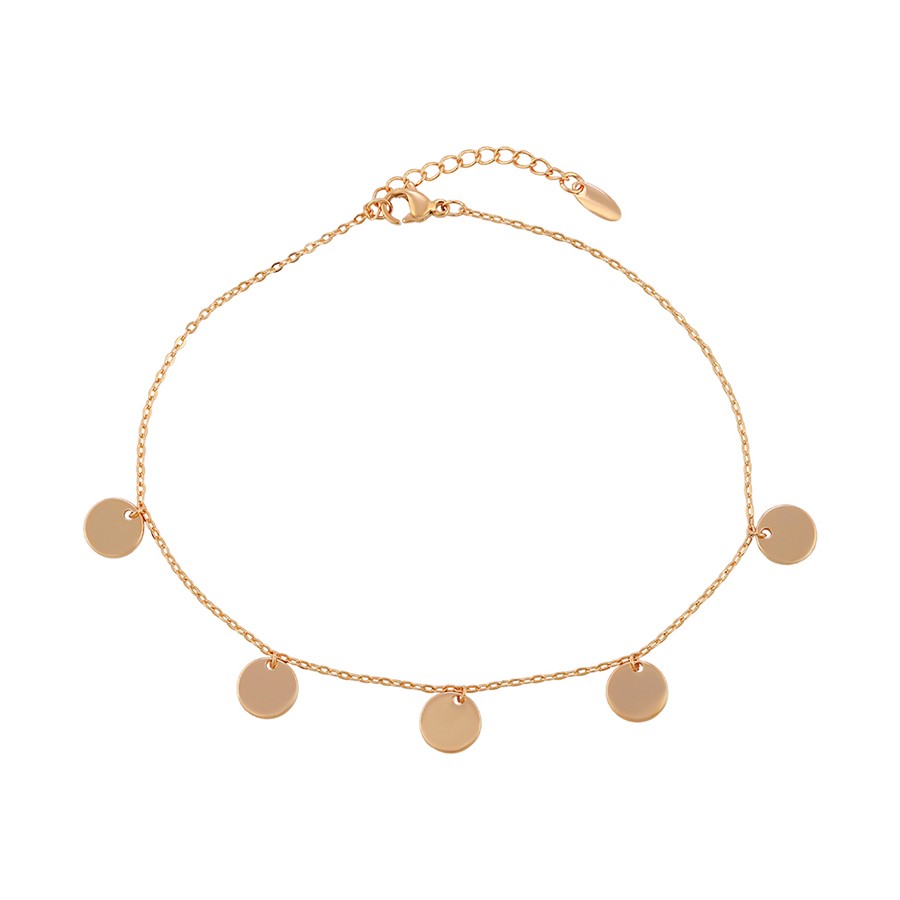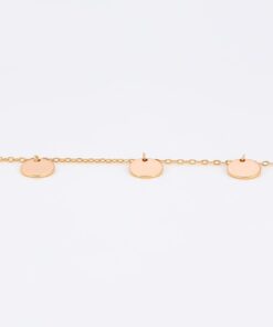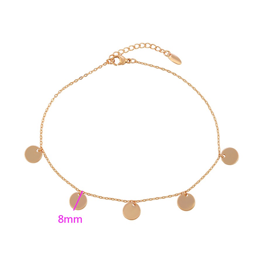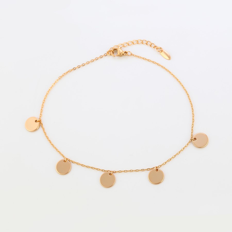 Hermosa tobillera elaborada en Acero, con doble enchape de oro rosé de 18K, con medallitas alrededor.